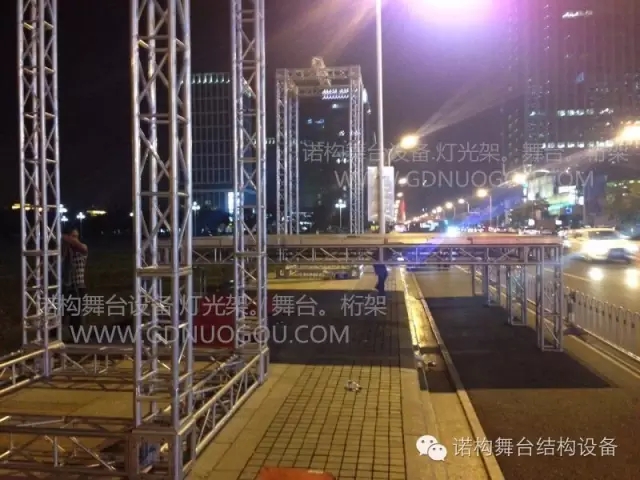 此次马拉松赛事现场使用的器材有:N300DA加强型灯光架,WT001A加强型舞台。