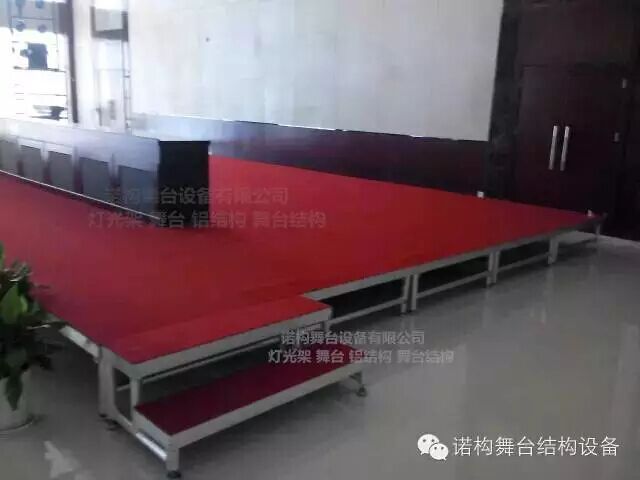 整批舞台采用全铝结构,配上专业舞台木板,具有防滑,防潮的特点。初来看上去并没有什么特别的地方。下面在看看舞台到了现场经过工程人员的安装修饰后的效果: