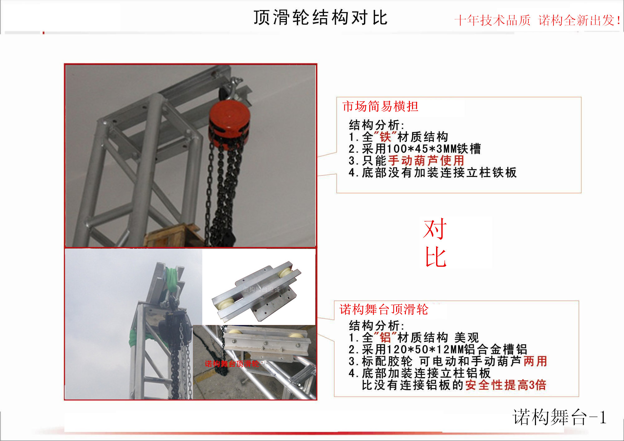 货比三家是一个常规的现象,但往往有些朋友忽略重要细节或不知道的情况,厂家为了成交订单偷工减料导致安全事故发生,一套铝架倒不倒关键部位在 方套 返头 顶滑轮 结构设计。希望以下资料能对您有所帮助 谢谢大家。