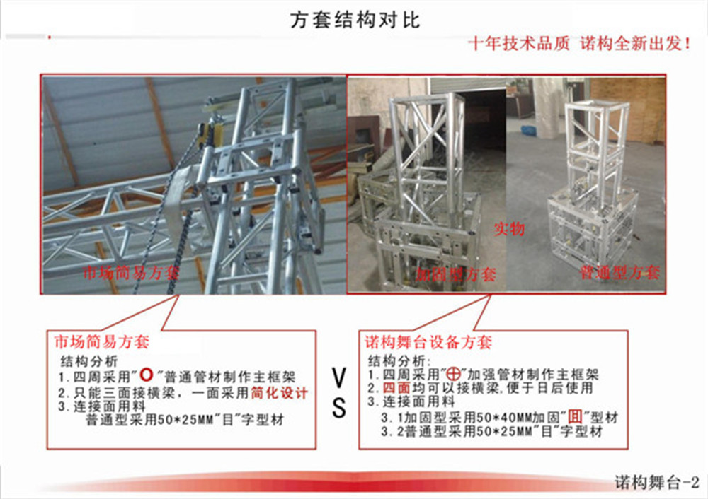诺构公司核心成员从业舞台结构设计及现场施工长达十几年,在这些年时间里,一直秉承“安全第一、合理组合产品”为第一要素,为了让广大客户能更合理的选配各种型号的灯光桁架、舞台等舞台结构设备,我们从需求分析、产品、方案等多个角度为客户提供投资建议,充分体现出业务及技术方面的“专”、“精”、“细”。以价值的有效传递为基点,快速促进互信合作!